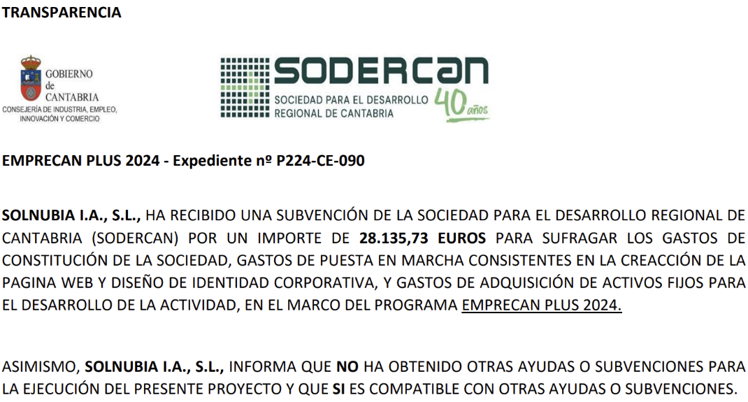 En cumplimiento de la ley de transparencia hacemos constar que los órganos de administración y/o dirección de la empresa SOLNUBIA I.A., S.L., no reciben retribuciones anuales ni indemnizaciones por formar parte de dichos órganos.